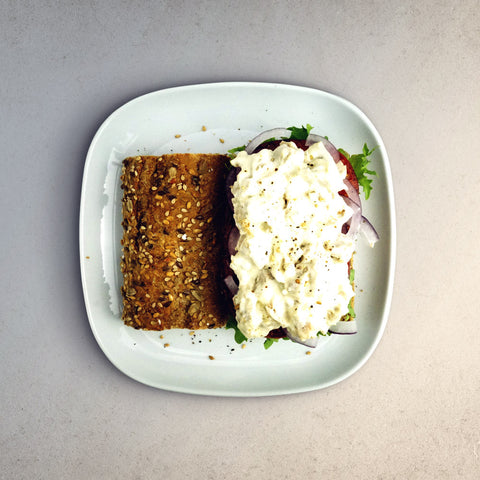 Ingredients: yellowfin tuna in olive oil, 1 baguette, rocket, tomato, onion, and aioli.